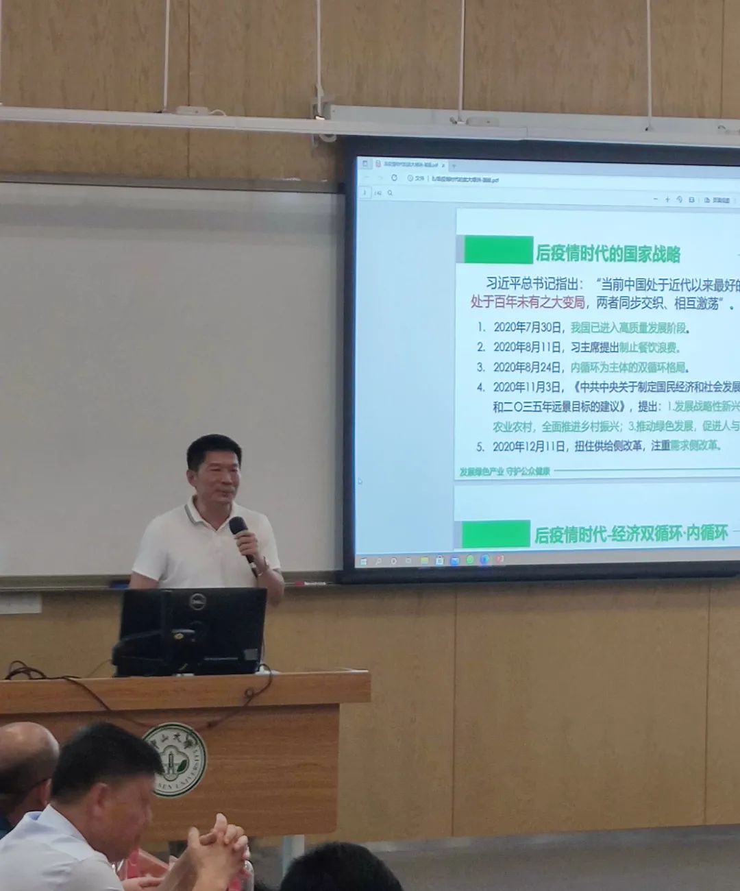 9月23日,值我國第四個(gè)“中國農(nóng)民豐收節(jié)”到來之際,中山大學(xué)農(nóng)學(xué)院為慶祝中國共產(chǎn)黨成立100周年,營造全面推進(jìn)鄉(xiāng)村振興、加快農(nóng)業(yè)現(xiàn)代化的濃厚氛圍,密切校內(nèi)外學(xué)術(shù)交流,進(jìn)一步推動(dòng)人才引進(jìn)和校地產(chǎn)學(xué)研合作,特舉辦了“慶豐收、感黨恩”豐收節(jié)慶祝大會。中山大學(xué)深圳校區(qū)管委會吳志剛主任,深圳市光明區(qū)相關(guān)部門,農(nóng)學(xué)院抗戰(zhàn)辦學(xué)老區(qū)湖南宜章縣農(nóng)業(yè)局等領(lǐng)導(dǎo),武漢武大綠洲生物技術(shù)有限公司、深圳市芭田生態(tài)工程股份有限公司等十家知名涉農(nóng)公司,與農(nóng)學(xué)院部分師生共近50人參加了大會。中山大學(xué)農(nóng)學(xué)院直屬黨支部書記程月華主持了大會。武大綠洲林春鴻董事長受邀參加大會。