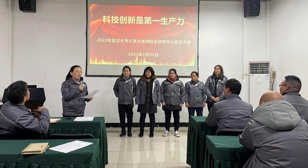 2022年1月21日,武大綠洲集團(tuán)召開了2022年武漢大學(xué)&武大綠洲聯(lián)合研發(fā)中心動員大會。本次會議的主題是“科技創(chuàng)新是第一生產(chǎn)力”,會議由研發(fā)中心執(zhí)行主任陳嬌主持,研發(fā)中心各部門負(fù)責(zé)人及代表參加。武大綠洲董事長林春鴻,副總經(jīng)理劉取、朱高峰出席會議并作重要講話。