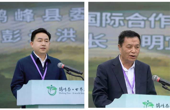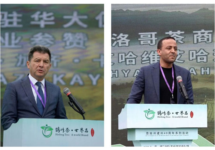 土耳其駐華大使館農(nóng)業(yè)參贊胡賽因·加齊·卡亞、摩洛哥茶商代表艾哈維·艾哈邁德開(kāi)幕式致辭