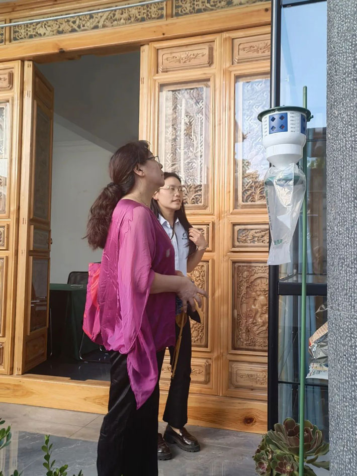 小院負(fù)責(zé)人盧聲潔帶領(lǐng)左教授和李老師參觀了洱海綠色防控科技小院,為她們?cè)敿?xì)介紹了武大綠洲以微生物技術(shù)為核心的綠色防控5+2體系、核心團(tuán)隊(duì)、核心產(chǎn)品及所獲得的成果,隨后還詳細(xì)介紹了公司昆蟲微生物菌劑、昆蟲病毒、特肥、誘捕器等系列產(chǎn)品的使用方法和應(yīng)用成果。