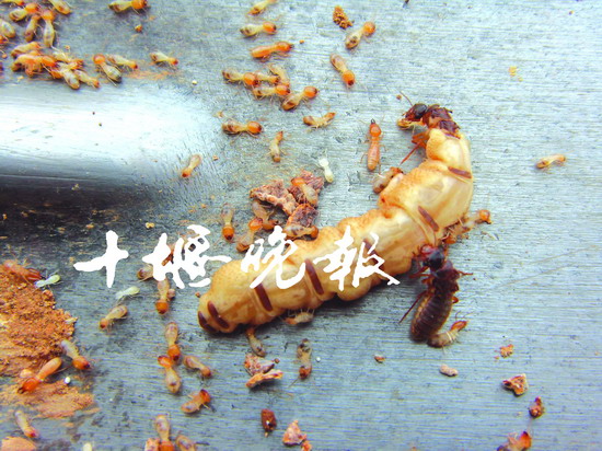 十堰山林茂盛、植被豐富,氣候溫和濕潤,十分適宜白蟻生長繁殖。不僅是水庫堤壩,城區(qū)不少建筑同樣被白蟻侵蝕。不過,白蟻分為多種,水庫上的多為土棲散白蟻,而城市建筑藏匿的普遍為散白蟻。相比之下,土棲的個頭更大些。