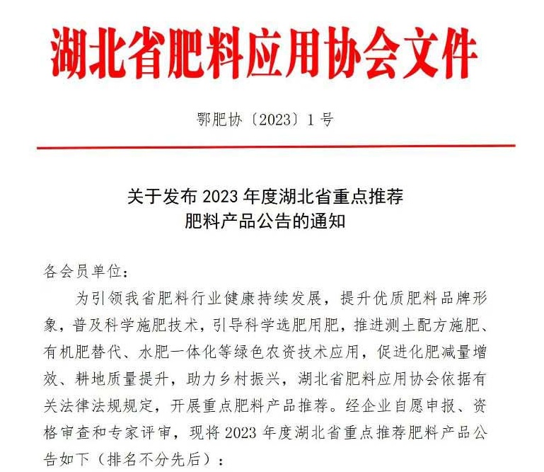 據(jù)湖北省肥料應(yīng)用協(xié)會(huì)通知,武大綠洲微生物菌劑神護(hù)(貝萊斯芽孢桿菌cy30)入選2023年湖北省重點(diǎn)推薦肥料產(chǎn)品目錄。