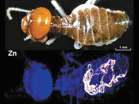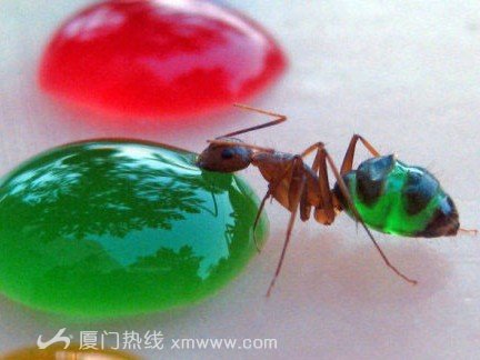 最近,英國人巴布的妻子意外發(fā)現(xiàn),螞蟻在吸食了灑在地上的牛奶后,腹部變白。于是巴布突發(fā)奇想,利用不同顏色的糖水吸引螞蟻,拍下了一組奇特的圖片。