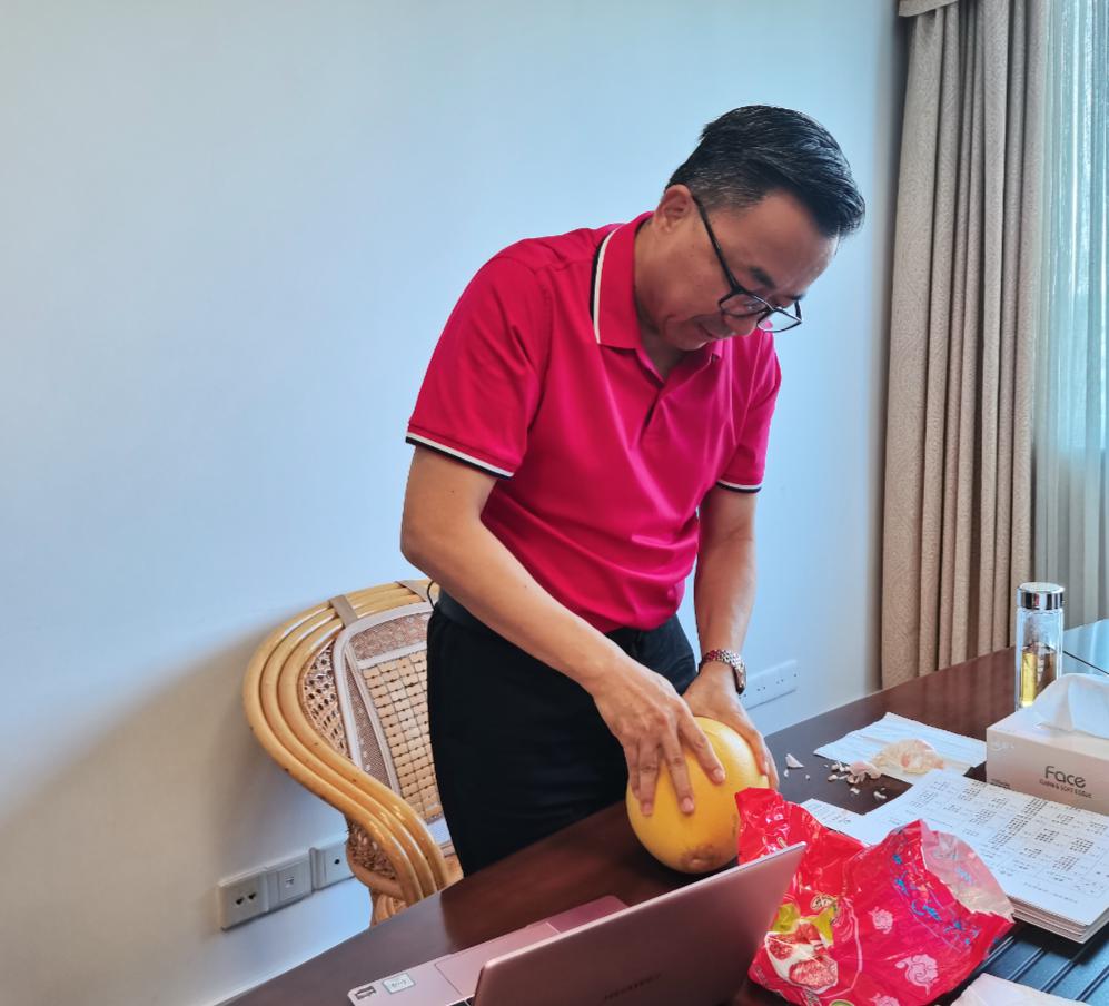 ↑林董事長(zhǎng)向溫副市長(zhǎng)匯報(bào)工作↑ 溫副市長(zhǎng)聽取匯報(bào)后對(duì)武大綠洲所做工作非常認(rèn)可,要我們與梅州市農(nóng)科院加強(qiáng)合作,提升梅州蜜柚的品質(zhì),恢復(fù)生態(tài);并鼓勵(lì)我們多從土壤和生態(tài)方面進(jìn)行改良,提升土壤微生物豐富度。 ↑溫副市長(zhǎng)品鑒聚德紅蜜柚↑ ↑溫副市長(zhǎng)示范徒手剝蜜柚方法↑ ↓大埔蜜柚↓