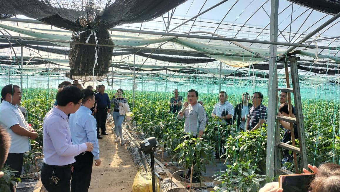 觀摩會現(xiàn)場:由武大綠洲研發(fā)中心高級綠色防控工程師黎秀麗和余浩詳細講解了大棚辣椒綠色防控技術(shù)、在種植過程中存在的問題、痛點分析、冬季管理。參會作業(yè)長及菜農(nóng)學習了《肥菌同施 治病提質(zhì)》、《昆蟲病毒 靶向滅蟲》綠色防控技術(shù)在大棚辣椒中的應用,并現(xiàn)場觀看到:示范大棚辣椒長勢喜人,效果非常好。武大綠洲基于微生物技術(shù)為核心的綠色防控技術(shù)體系受到領(lǐng)導、作業(yè)長和菜農(nóng)的一致認可,紛紛表示要與武大綠洲繼續(xù)深入合作。