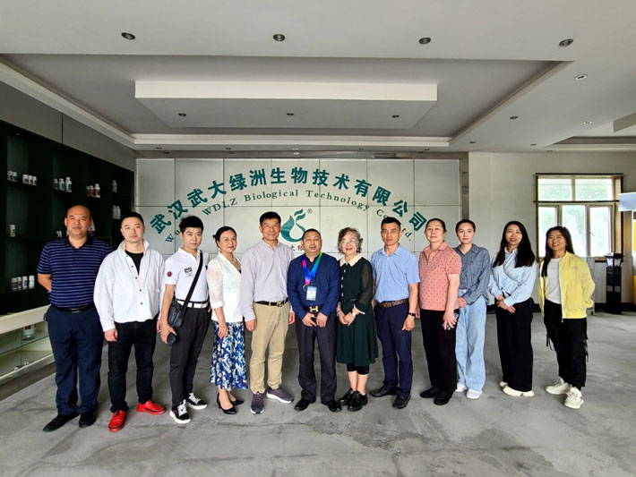 武大綠洲董事長(zhǎng)林春鴻博士帶領(lǐng)大家參觀(guān)了公司展廳,為大家詳細(xì)介紹了武大綠洲公司理念、發(fā)展歷程、優(yōu)勢(shì)技術(shù)、核心產(chǎn)品以及綠色防控體系,讓他們更深入地了解武大綠洲。