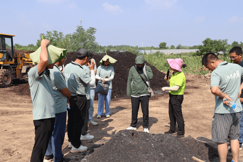 首先,陳博士帶領(lǐng)學(xué)員在武大綠洲集團(tuán)綠色防控生態(tài)小鎮(zhèn)實(shí)地考察以微生物技術(shù)為核心的綠色防控5+2體系的每個(gè)應(yīng)用場(chǎng)景。陳博士詳細(xì)講解了“三管分立”的污水處理體系、濕地、生物多樣性、果園種養(yǎng)殖循環(huán)和碳化稻殼等內(nèi)容獲得各位學(xué)員的認(rèn)可。