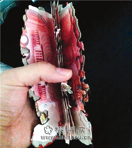 在網(wǎng)友貼出的照片上,記者發(fā)現(xiàn),近千元的現(xiàn)金連同紅包一起變得殘缺不全,被白蟻啃噬的缺口處呈不規(guī)整鋸齒狀。據(jù)網(wǎng)友稱,近期其奶奶整理冬衣時發(fā)現(xiàn),原本壓在衣柜底的錢居然被白蟻啃掉了一大半。為此,網(wǎng)友把殘鈔拿到銀行去卻不能兌換。由于怕老人家心疼,網(wǎng)友只好拿自己的錢給老人墊上。