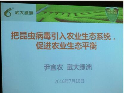 7月10日,由中國農科院主辦的第三屆綠色防控新技術研修班在大連舉行,武漢大學、武大綠洲聯合研發(fā)中心尹宜農主仼受邀作了題為《把昆蟲病毒引入農業(yè)生態(tài)系統,促進農業(yè)生態(tài)平衡》的演講,公司林春鴻總經理隨同參加了學習。